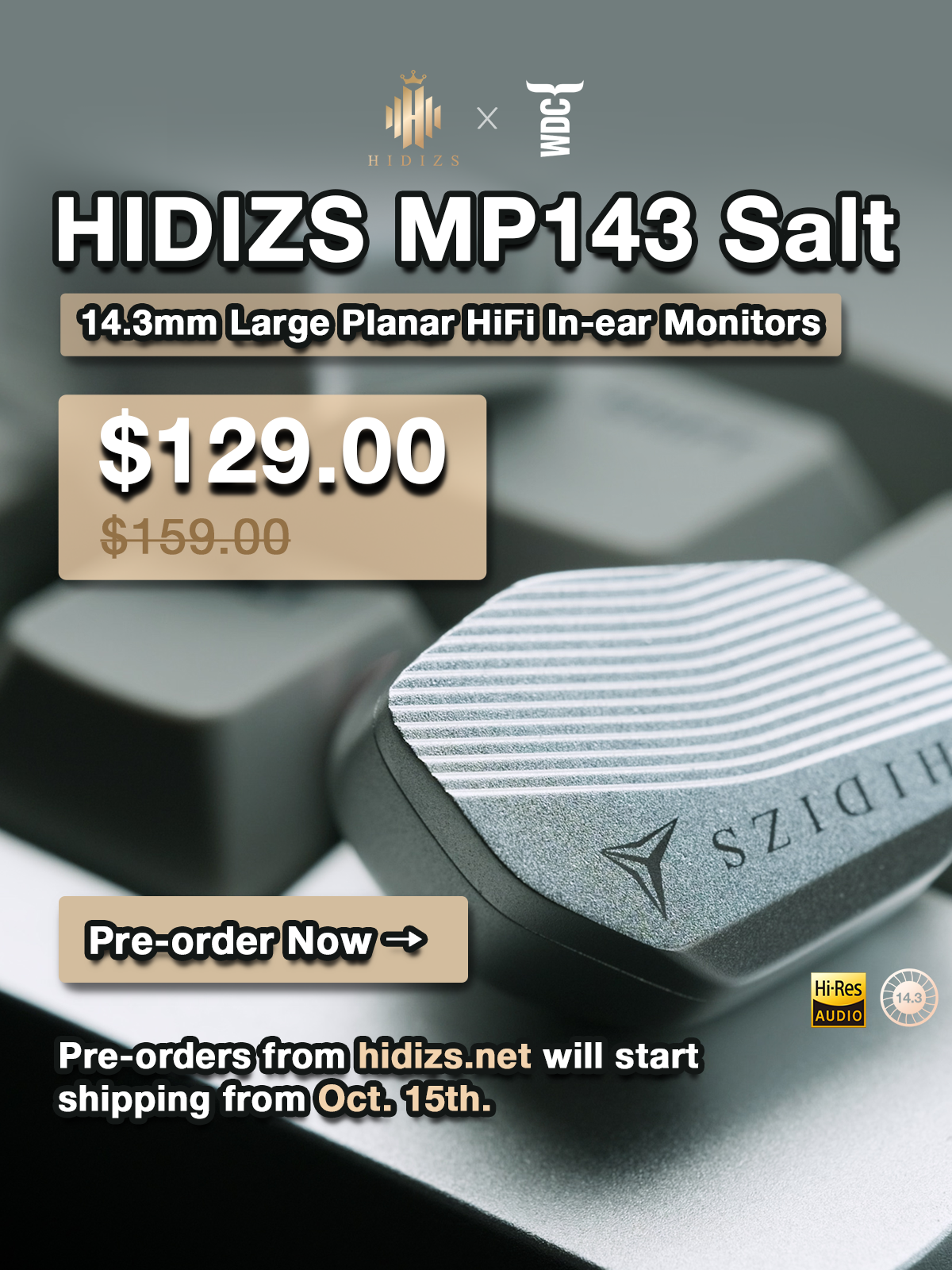 HIDIZS has launched the new MP143 Salt Planar Magnetic Hi-Fi In-ear Monitors, the sibling model to the MP145. Both share similarities in many aspects but also have distinct features, reflecting HID...