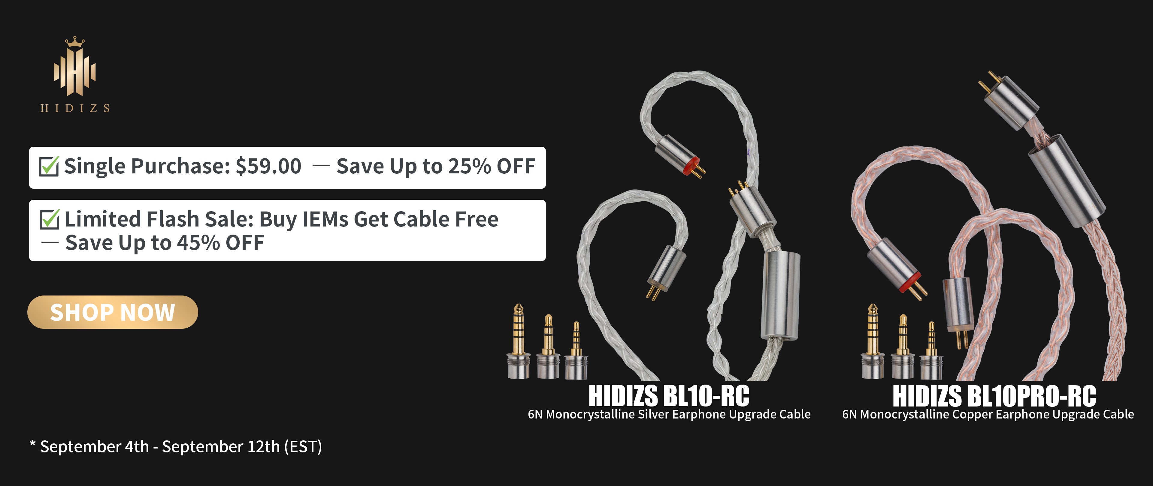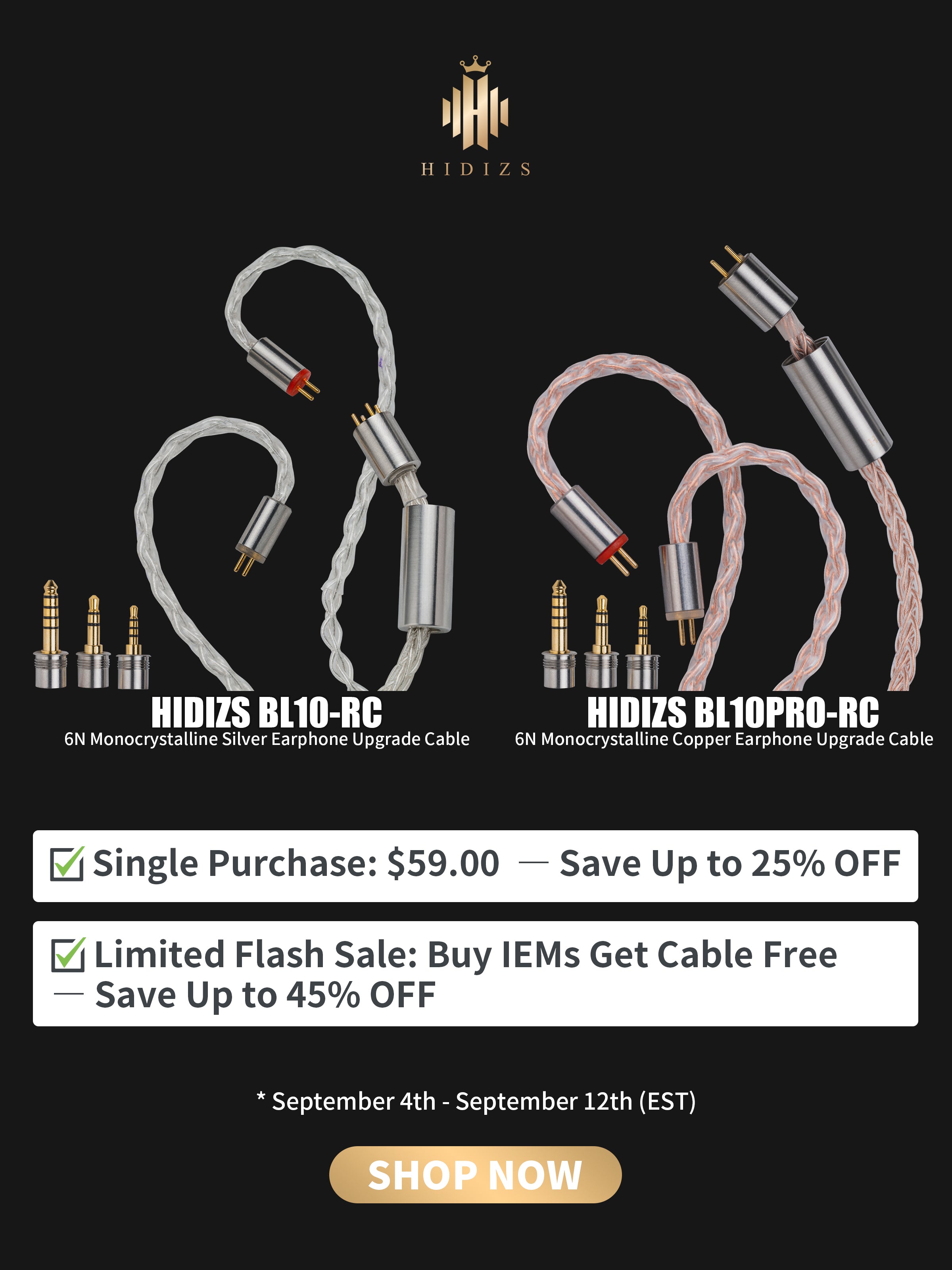 HIDIZS BL10PRO-RC 6N Monocrystalline Copper Earphone Upgrade Cable