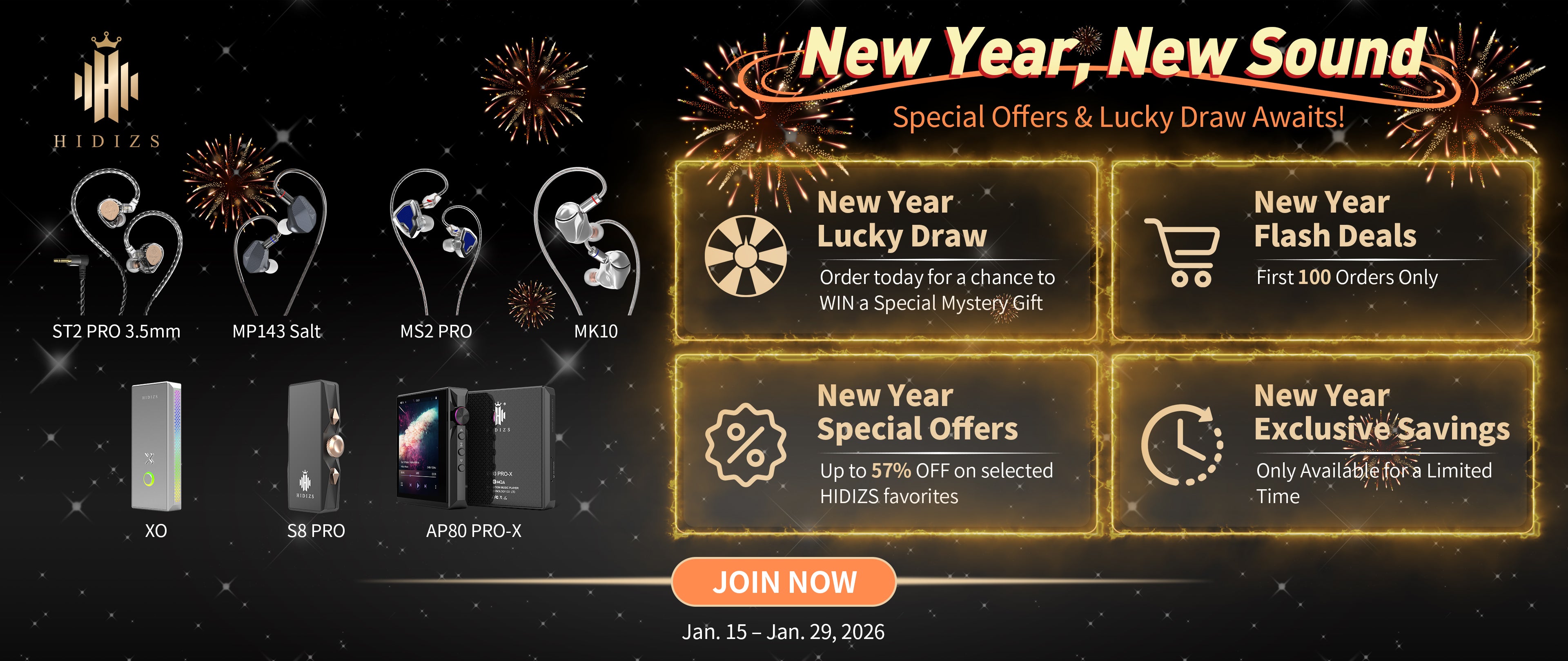 During the HIDIZS New Year Event, enjoy special pricing, flash deals, and lucky draw gifts on selected HiFi IEMs, DACs, and DAPs. Whether you’re refining your portable rig or stepping into true HiFi sound, this is the smartest moment to upgrade with greater value.