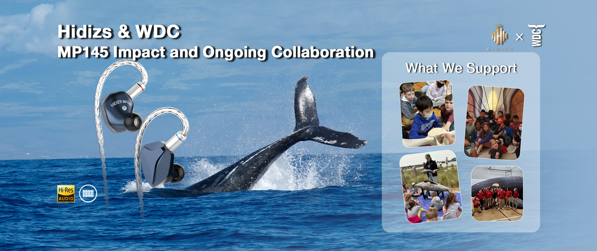 Your contribution, through the purchase of any MP145 product, will directly contribute to WDC's ongoing efforts. We value your support and look forward to making a positive impact on our environment together. If you’d like more information about this partnership, email hello@hidizs.net or contact@whales.org.