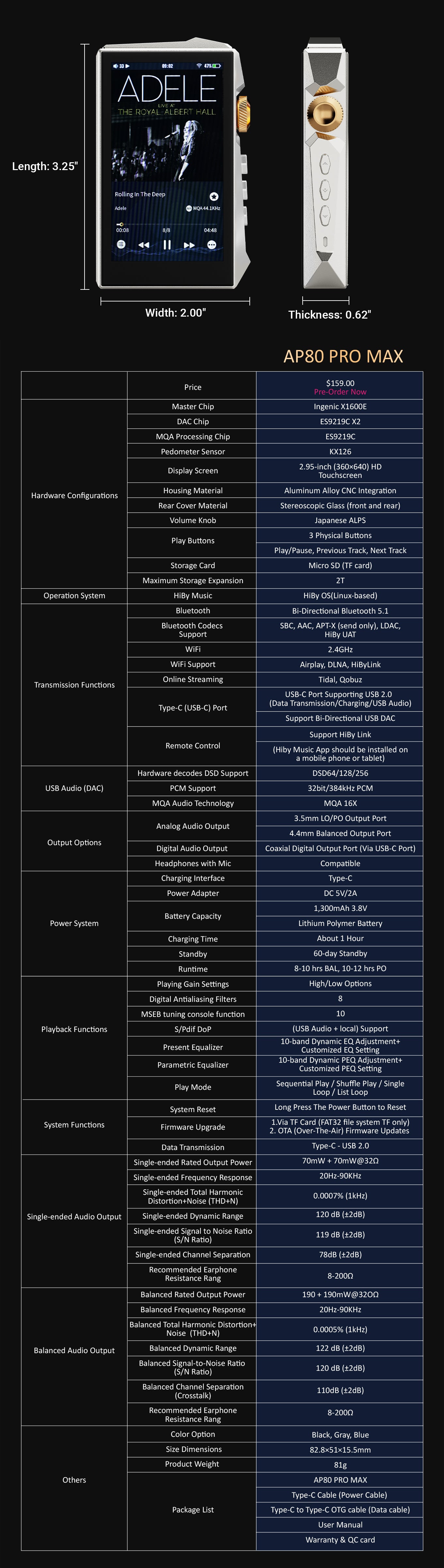 The AP80 PRO MAX remains the same compact, all-in-one Hi-Fi music player — delivering studio-grade sound and seamless streaming in a sleek, pocket-sized design.