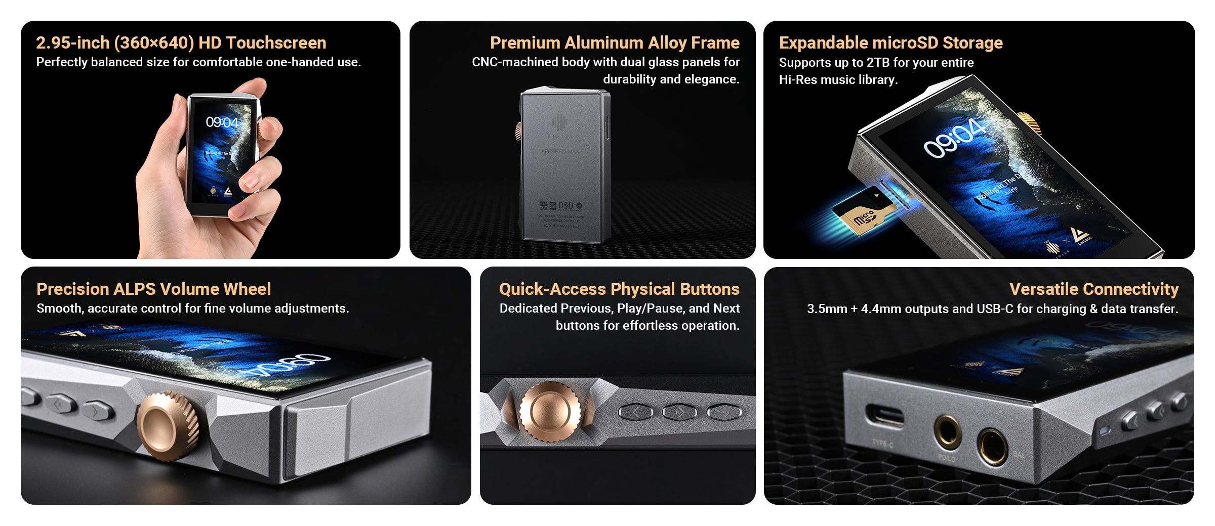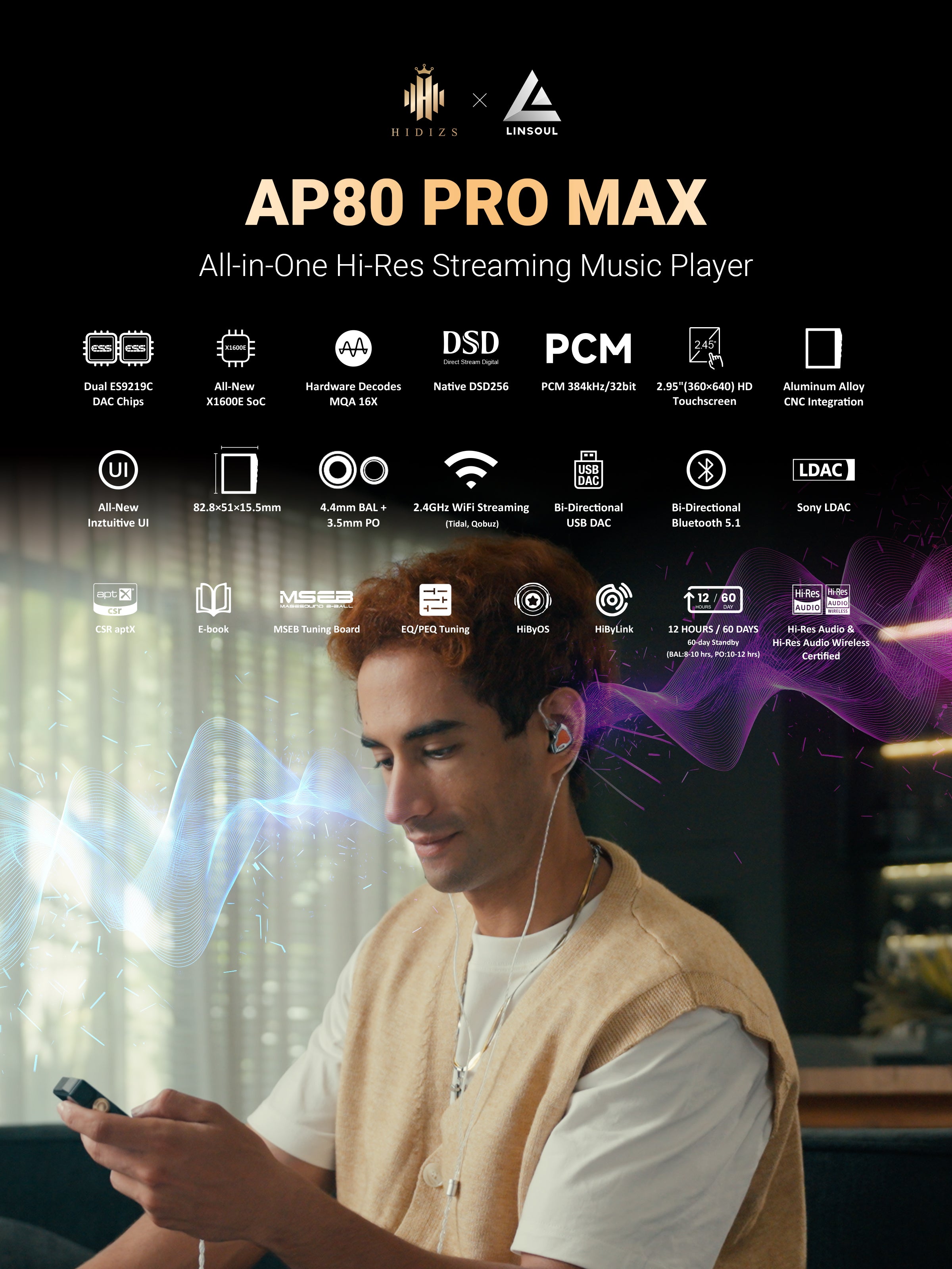 The AP80 PRO MAX is a portable HiFi player designed for music lovers, letting you hear details that your phone can never reveal. Whether it’s the delicate piano melodies, powerful bass, or every breath in a vocal performance, it faithfully reproduces sound with stunning clarity, making you feel like you’re right there at the live performance.