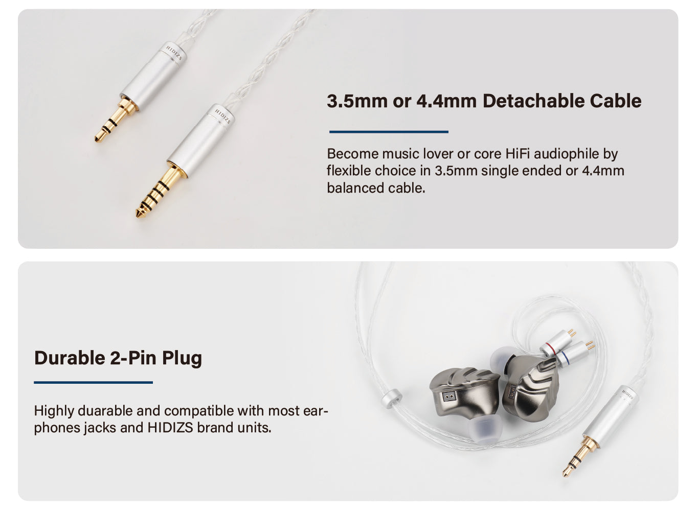 HiFi Compatible: Standard Detachable Cable & Durable 2-pin Plug