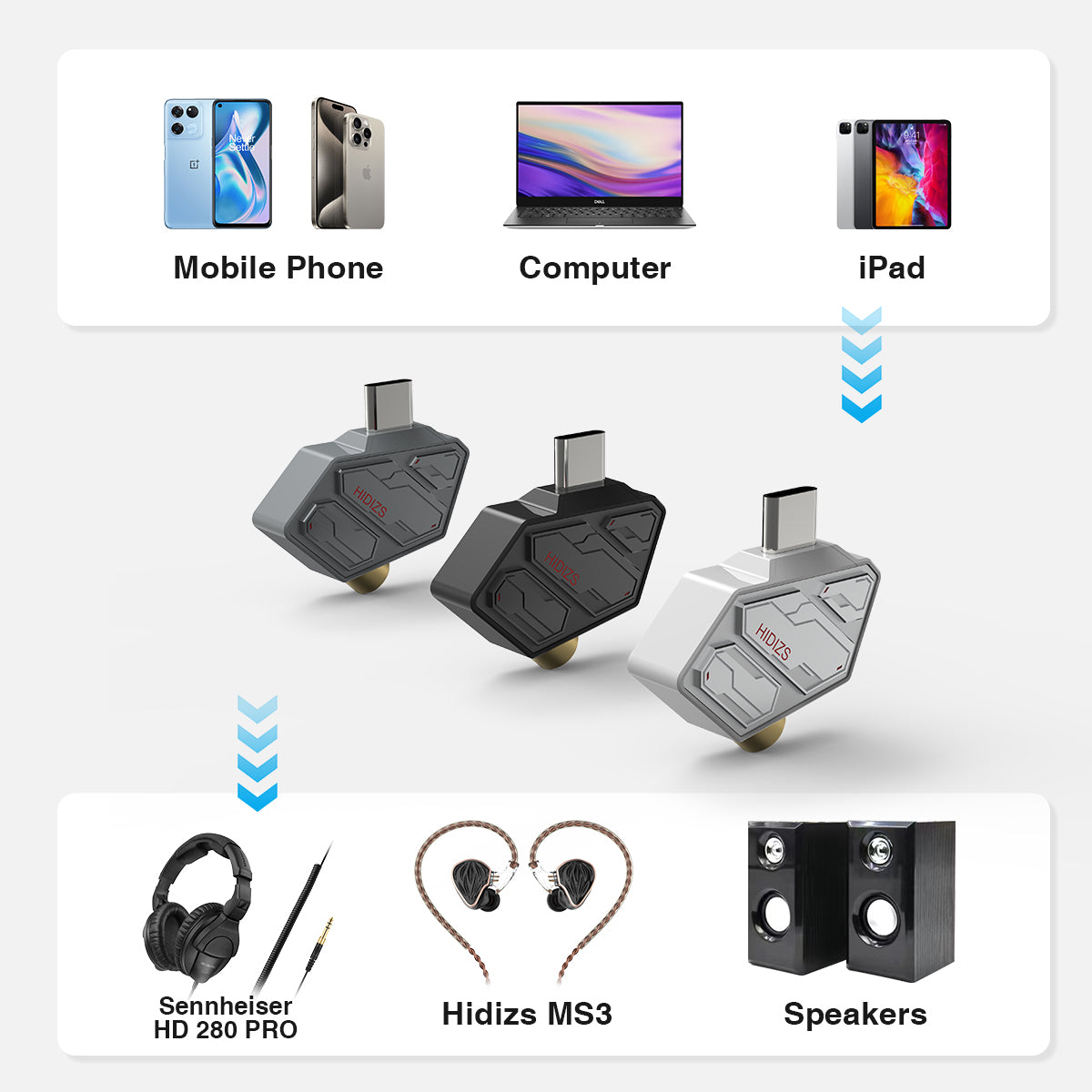 HIDIZS SD2 enhances audio output on various devices, offering a seamless experience for multimedia and gaming. Compatible with Windows, iOS, Android, HarmonyOS, and more, it ensures zero-delay joy with wired headphones—simply plug in, play, and immerse yourself in sound.