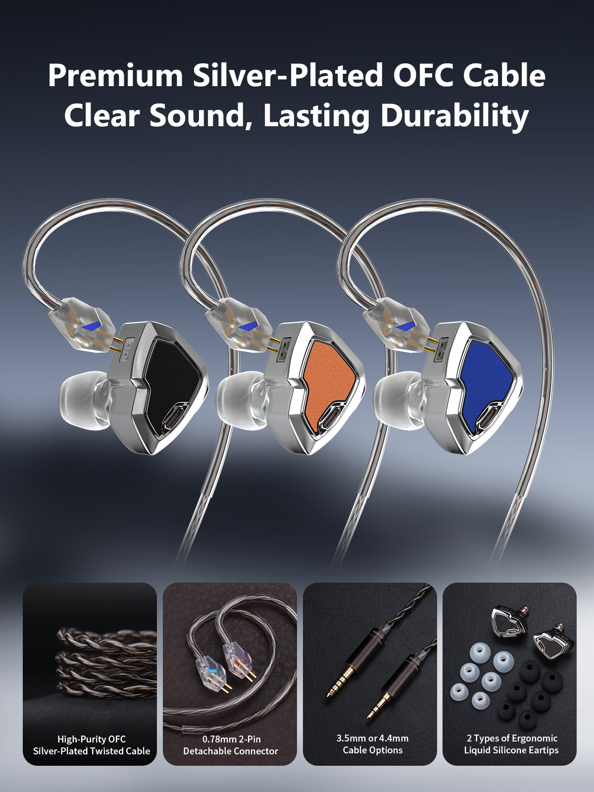 It features a 0.78mm 2-pin detachable connector with a unique frosted plug design. With versatile 3.5mm or 4.4mm options for both standard and balanced setups, the cable is built to last with a 38kg pull strength, ensuring durability through daily movement, wear, and travel.