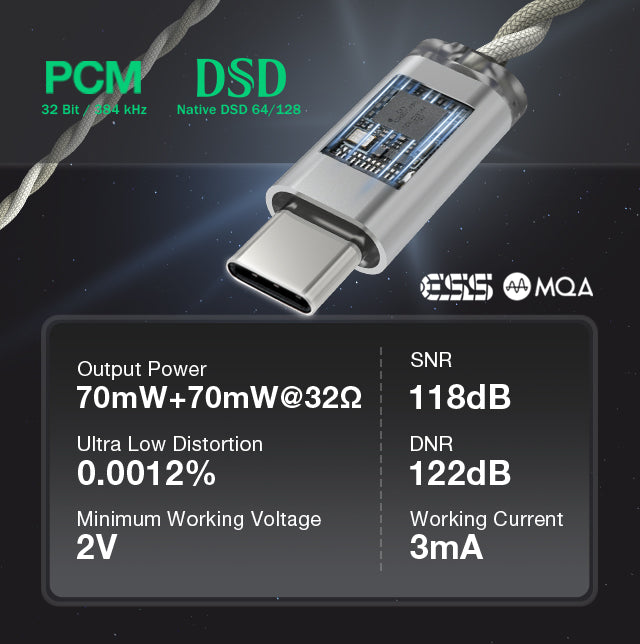 HIDIZS offers a high-end USB-C audio cable featuring a powerful DAC and durable 0.78mm 2-pin connector, delivering strong audio and stable signal transmission. With output up to 70mW+70mW@32Ω, it efficiently drives any IEMs or headphones. No need for costly DAC & AMP combos—swap in any 0.78mm 2-pin or MMCX IEMs to experience this pioneering HiFi digital USB-C cable, perfect for audiophiles and music enthusiasts.