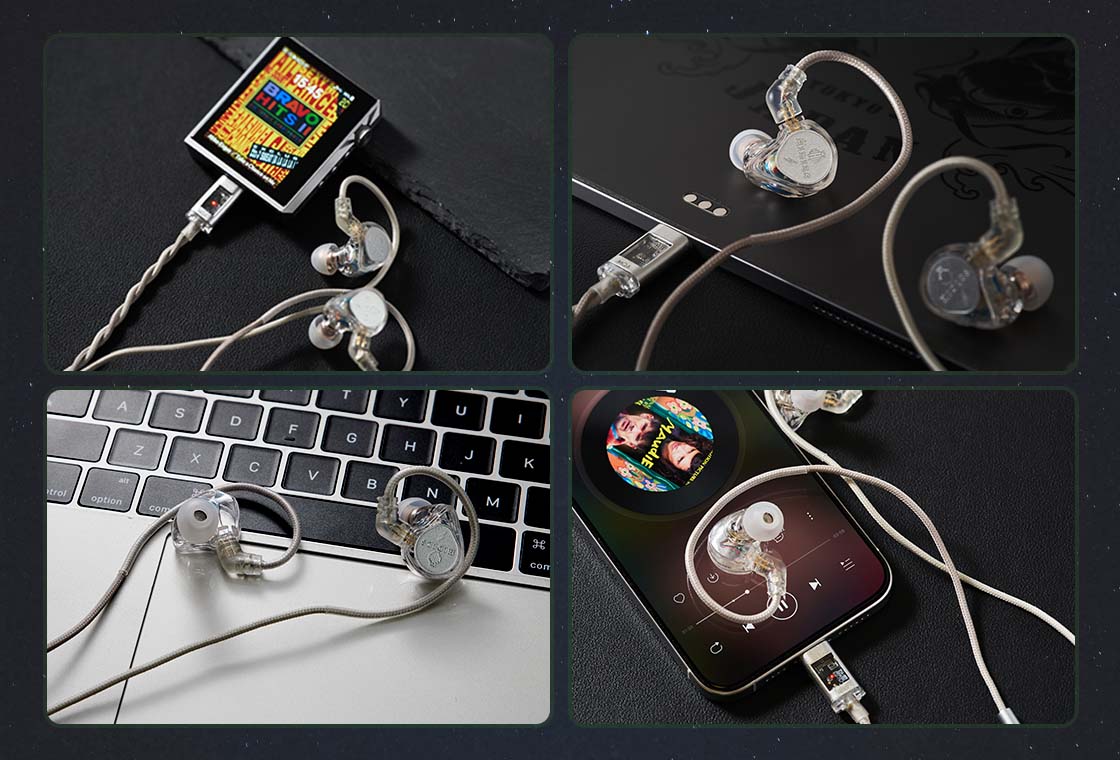 The 2-in-1 Solution: The gigh-performance built-in decoding DAC with HiFi in-ear monitors offer simplicity, efficiency, and portability for all scenarios, including commuting, homing, sporting, traveling, and entertainment.